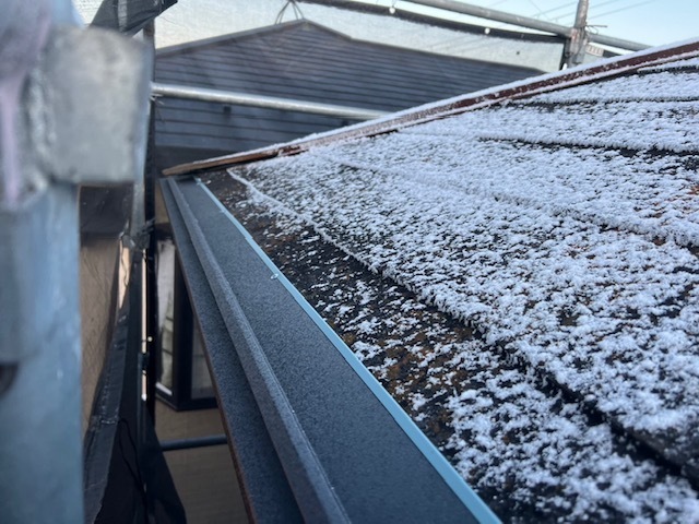 今日は雪止撤去と屋根の唐草板金を取り付けました。雪が降ってきたので作業終了です。また明日は続きから作業進めていきます。またアップします。