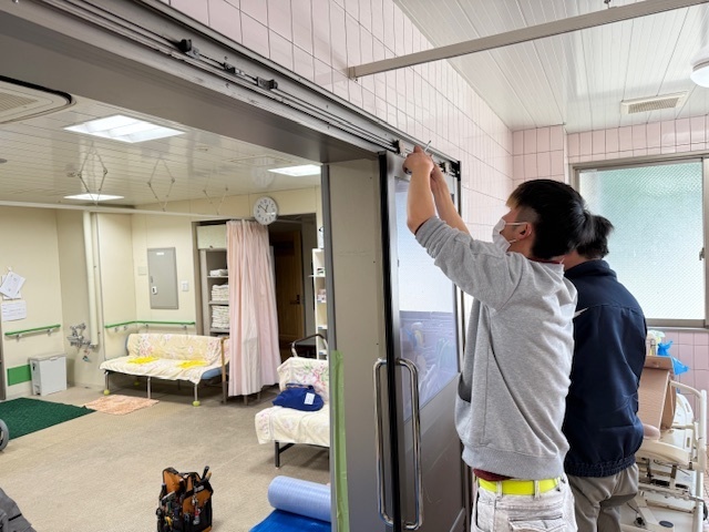 今日は調理室のドアが重たくなり戸車の交換作業をさせて頂きました。古いドアで部品がなかったのですが現行品を現地で加工して取り付け完了しました。また浴室ドアも外れ掛かっており危ない状態だったので一緒にメンテナンスさせて頂きました。今月は照明の交換とドアの交換2箇所もまだ工事頂いておりますので引き続き宜しくお願いします。またアップします。