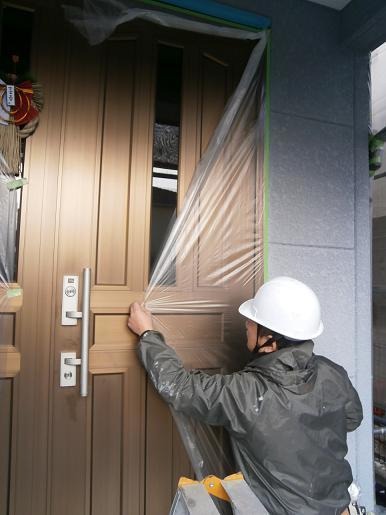 A.サッシやガラスなど、塗料が付着しては困る部位にビニールシートを貼って守ることです。