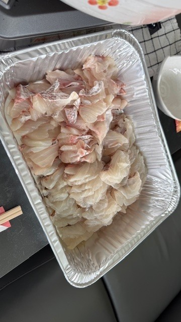 以前、釣ってきたタイでタイしゃぶ、タイご飯を作りました。社員みんなで美味しく頂きましたよ(*’ω’*)