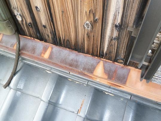 屋根の谷状になった部分は溝(水が流れる場所)に銅板が多いです。 銅は酸性雨などの影響で年数が経過すると穴が開いてしまいます。この場合の処置は銅板を、ステンレス板に交換します。