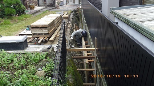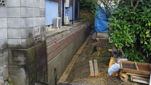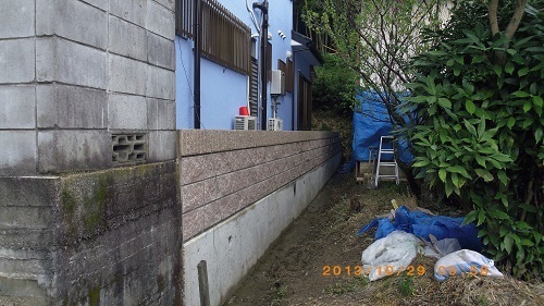 【01】上の写真の石垣部分の擁壁工事と古いブロック塀をリフレッシュします。