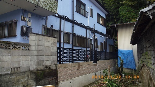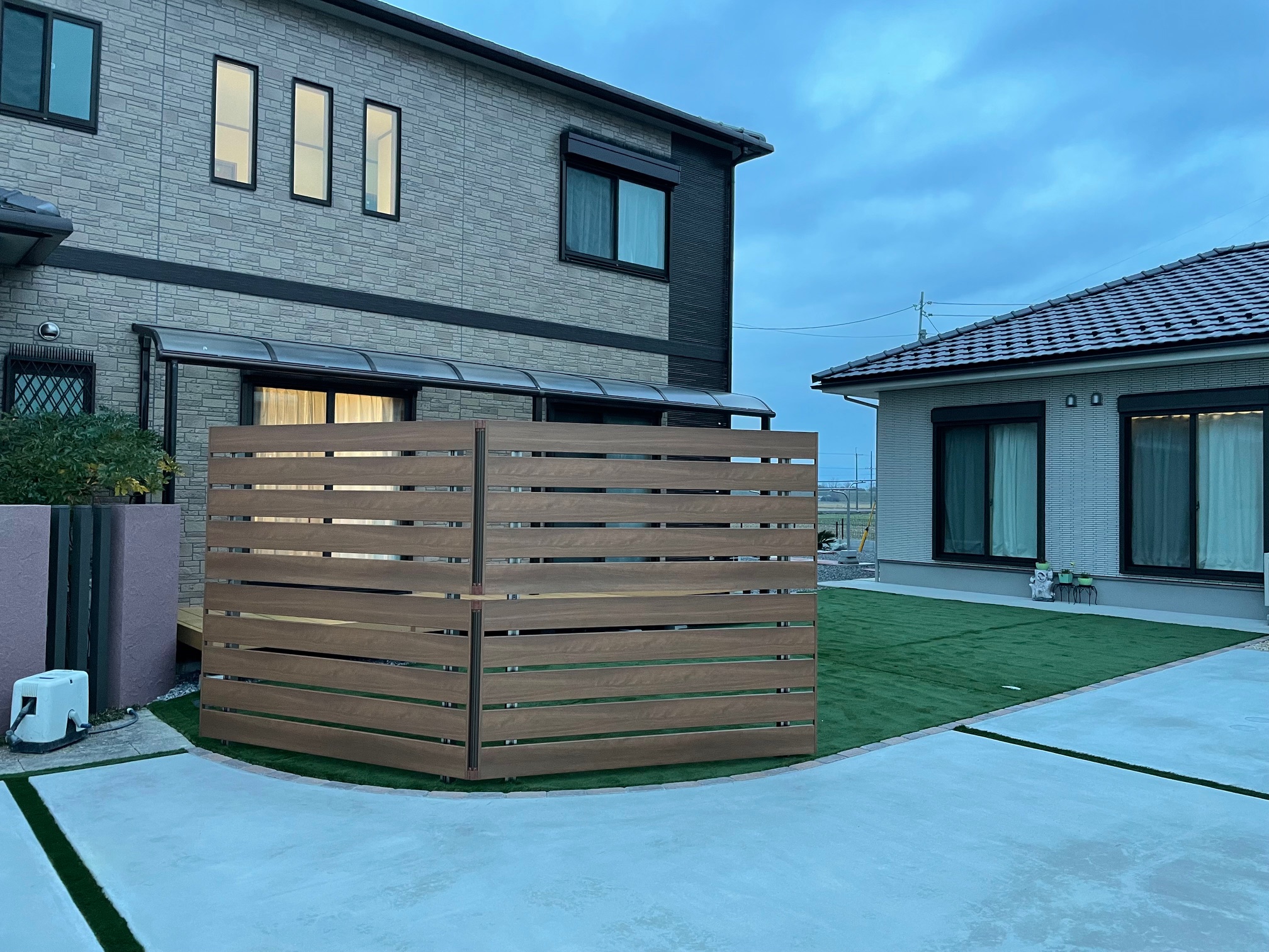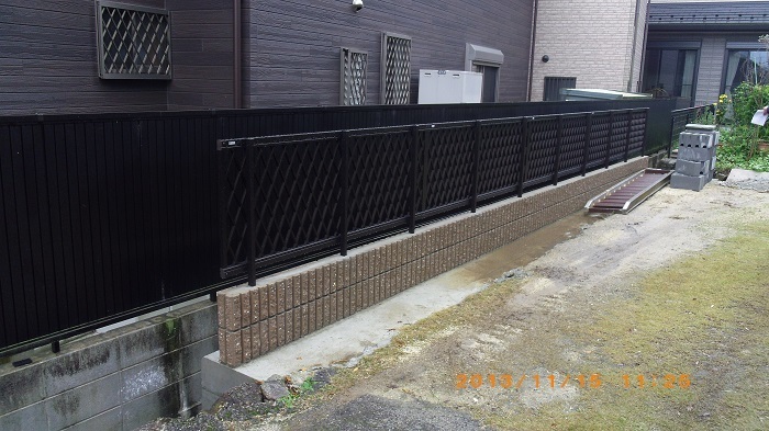 ここでは、甲賀市Hさま宅で施工しました、擁壁(ようへき)、エクステリア(フェンス・テラス)の施工例を紹介します。