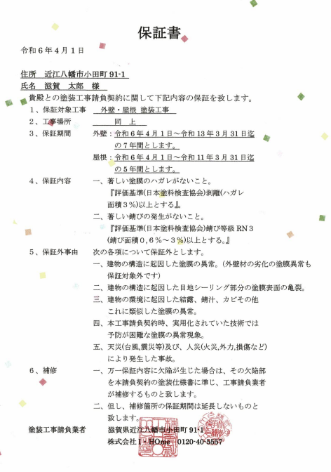 施工内容の嘘、材料のごまかし等があった場合工事代金を返金致します。