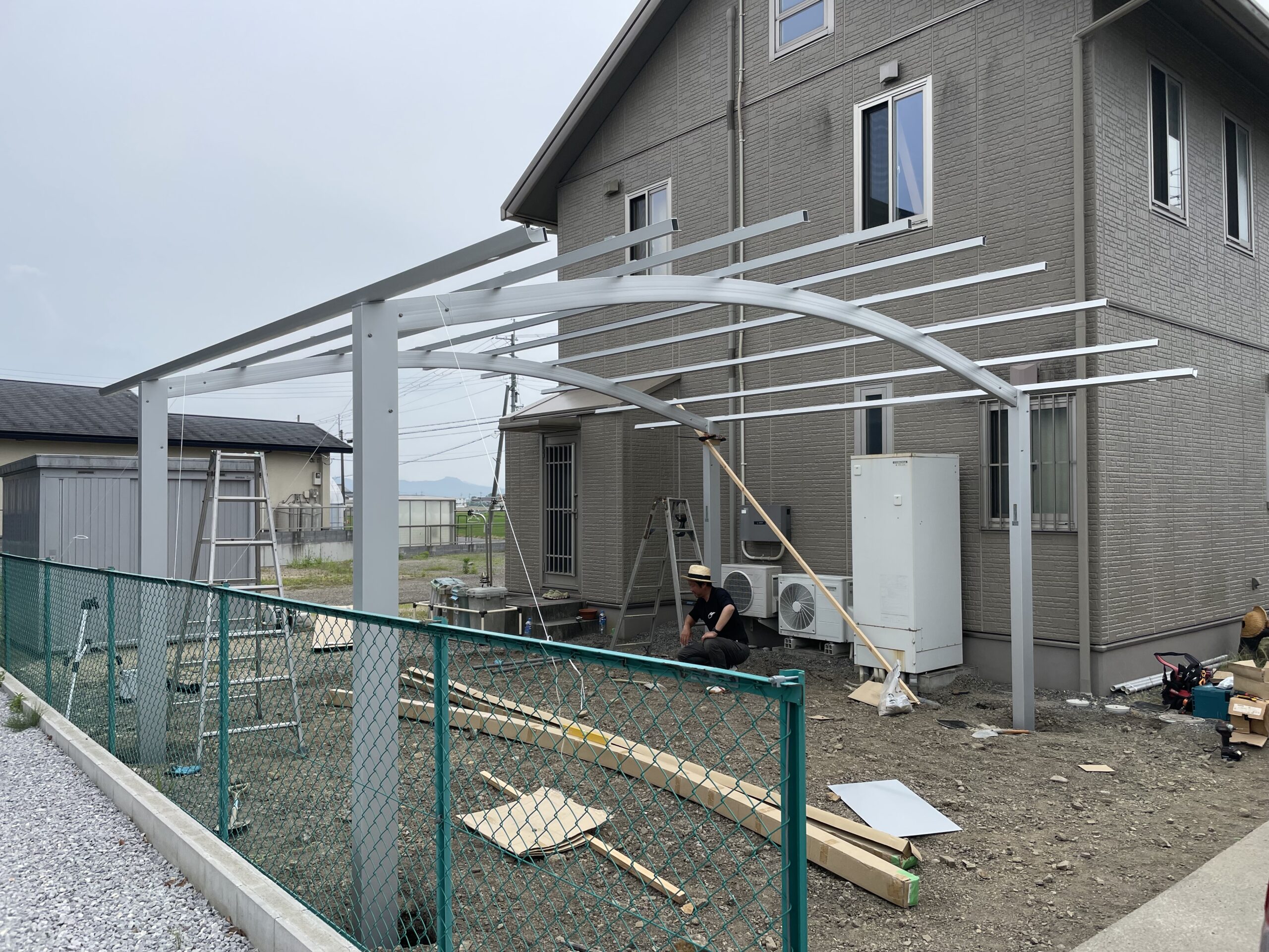 【08】テラス屋根パネルを取り付けました。土間いぬばしりも広くなりました