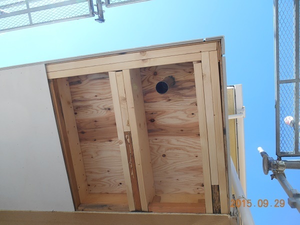 ベランダ外壁・軒裏の塗膜の剥離・木部の腐食があったためベランダを解体新設しました。