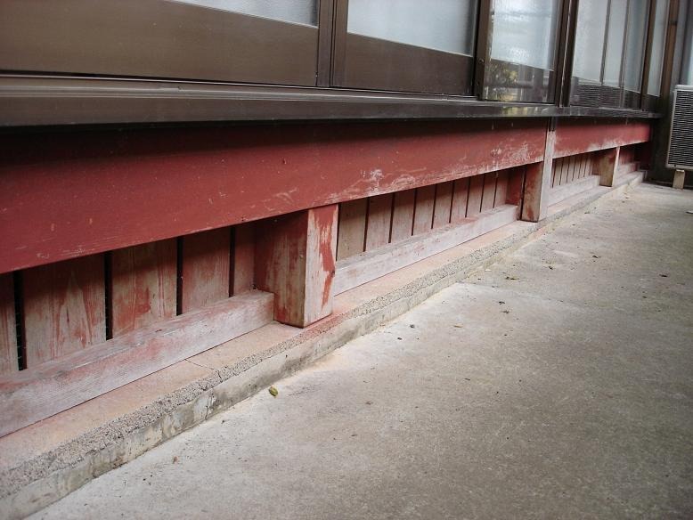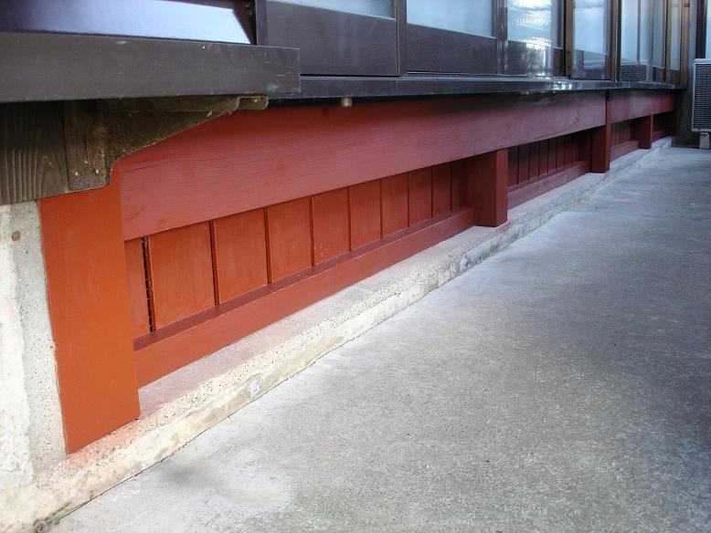色が剥がれてますのでベンガラを塗り新築時に復元します。